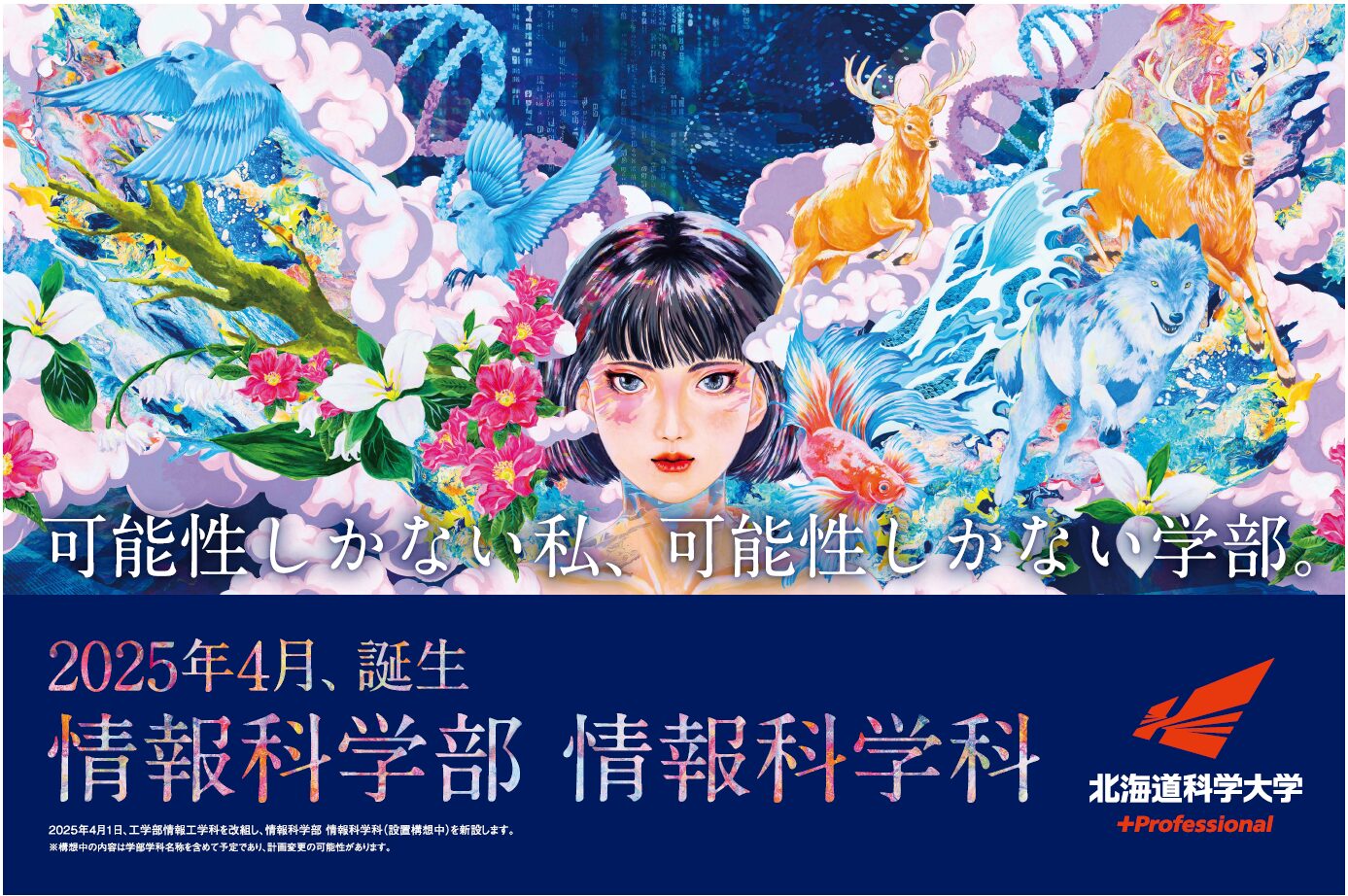 北海道科学大学は、2027年4月に手稲駅前に新キャンパスを新設するにあたり、同時に地域創造学部 地域創造学科、情報科学部 経営情報学科を開設する予定です(2026年1月時点)。特に地域創造学部 地域創造学科は北海道科学大学として初めての「文系学部」であり、創立以来北海道の理工系高等教育を支えてきた北海道科学大学にとって大きな”チャレンジ”ともなる教育改革。本プロジェクトの実施にあたり電通北海道は、新しくできる学部・学科のキービジュアルの制作をはじめ、TVCM、WEB広告といったメディア展開から、オープンキャンパスでの告知、HPの制作などに携わらせていただきました。