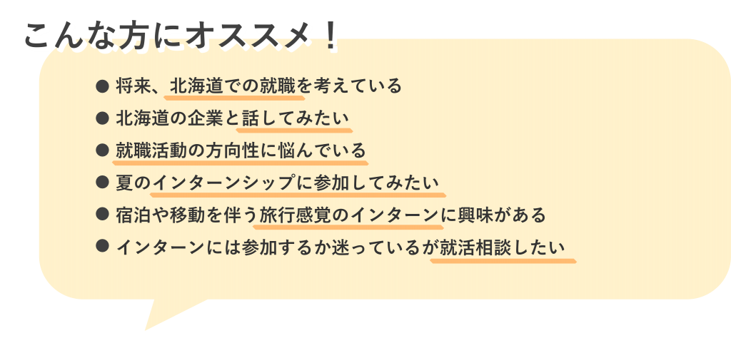 本イベントは、北海道や当社に興味のある道外の学生の皆様が北海道での暮らしや仕事のことを知っていただける充実した内容でありつつ、