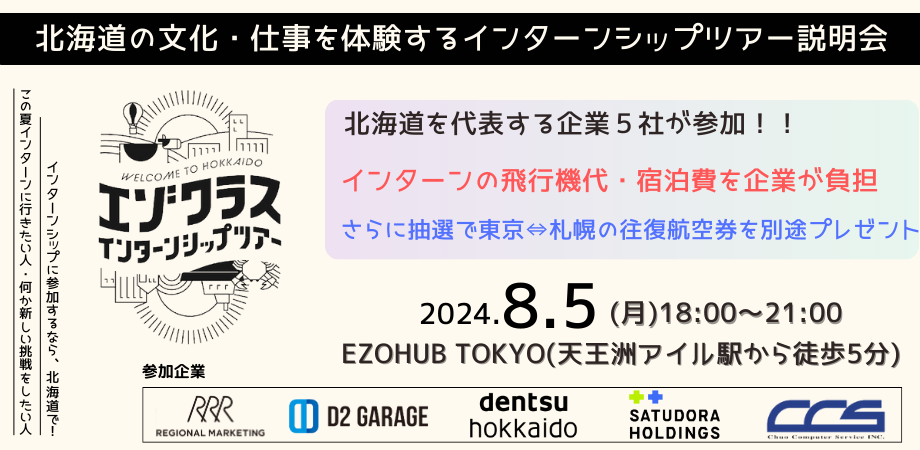 8/5東京にて開催の「エゾクラスインターンシップツアー2024」説明会&企業交流イベントへ出展します